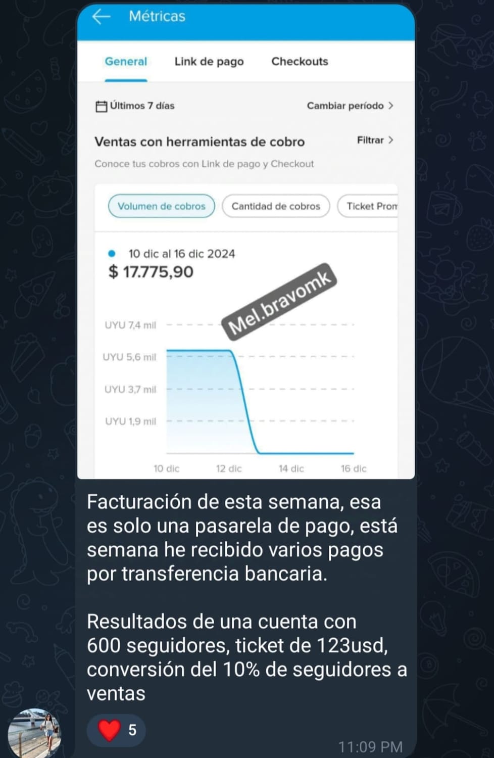 El curso se enfoca en la calidad y no tanto en la cantidad de seguidores. De hecho, en mi primer mes, creando una cuenta de Instagram desde 0, pude ganar $2.400 USD con menos de 500 seguidores.